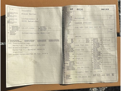 Yamaha XVS1100; MFK 02.06.2025; Motorrad in gutem Zustand; Besichtigung möglich in Rehetobel.; BL