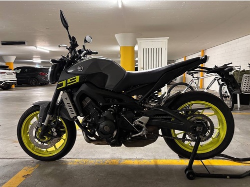 Sehr schöne und gepflegte Yamaha MT 09 in grau/gelb, als Extra für sportliches und bequemes Fahren mit Komfortsitz. Sofort fahrbereit.; Winter-Heckständer wird gratis mitgegeben.; BL