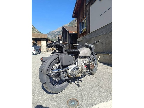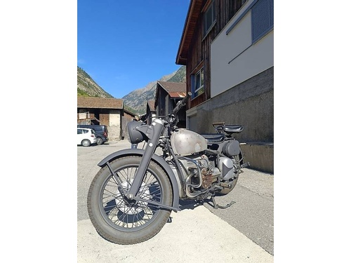 Zum Verkauf steht eine von 1571 gebauten A-580, mit Starrahmen hinten und vorne mit der grossen Parallelogramm Gabel. Es ist ein Projekt Abbruch von mir. Den Tank habe ich von einer Fachwerkstatt sandgestrahlt und innen beschichten lassen. Das sieht sehr gut aus! Beim Ölwannendeckel sind 2 Gewinde ausgerissen. Der Motor lief als ich ihn vor 7 Jahren erworben habe. Der Lack ist Erstzustand. Die Originalen Ledertaschen für hinten, die Gewehrhalterungen und die Tarnlampe für vorne sind auch dazu, sowie das Handbuch. Für ein Winterprojekt, oder jemand der eine seltene Maschine sucht bestens geeignet! Die Maschine ist als Veteran eingetragen, muss also nur alle 6 Jahre zum MFK! Die Maschine kann gegen ein kleines Km-Geld geliefert werden; Kontakt unter 079 406 19 27; ; ; Wer meine andere Maschine, die Sunbeam 1949 im Paket kaufen möchte, bekommt beide für Fr. 15`000.-; BL
