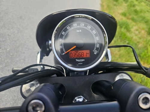 Triumph Speedmaster 865, 60cv, la plus puissante de sa catégorie, de 2016, 35000 km, avec sacoches latérales, de fourche et de dossier, dossier passager, selle confort av-arr, clignotant av-arr led séquentiel, phare longue portée led, chargeur USB, pneus en bon état, cadre de plaque spécial, chaine changée dernièrement.; Le service sera effectué lors de la vente. A voir pour expertise.; HT
