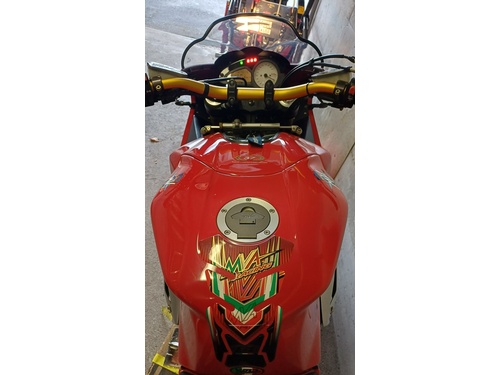 Umbau Superbike eingetragen, alle Originalteile vorhanden, Top Zustand, ab Service, neue Batterie.; Serienmässige Ausstattung:; 6-Gang-Getriebe; Doppelscheibenbremse vorne; Doppelscheinwerfer; Doppelsitzbank; Garantie: 2 Jahre ohne Kilometerbe-; Leichtmetallfelge; Scheibenbremsen hinten; Seitenständer; Solositz; Vollverschalung; BL