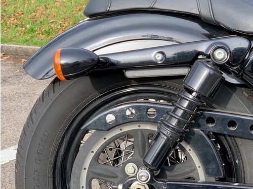 Zusätzliche 1er Sitzbank.; Kurze Stossdämpfer, schwarz, sch.warz hinten.; Seitlicher Nummernhalter.; Blinker vorne ummontiert.; ; Vorderrad hat eine leichte, nicht korrigierbare Unwucht (gemäss Harley Service).; BL