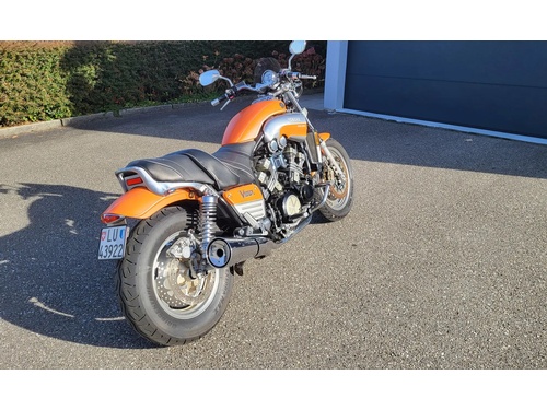 Yamaha Egli M-Max, 2 Plomben, Scheibenbremsen vorne Egli Brembo gelocht, Scheibenbremsen hinten gelocht, Kleinere LED-Blinker vorne und hinten, Rundes Rücklicht, Luftfilter spezial. Leichte Gebrauchspuren am Schlüsselschloss und Auspuff.; SS